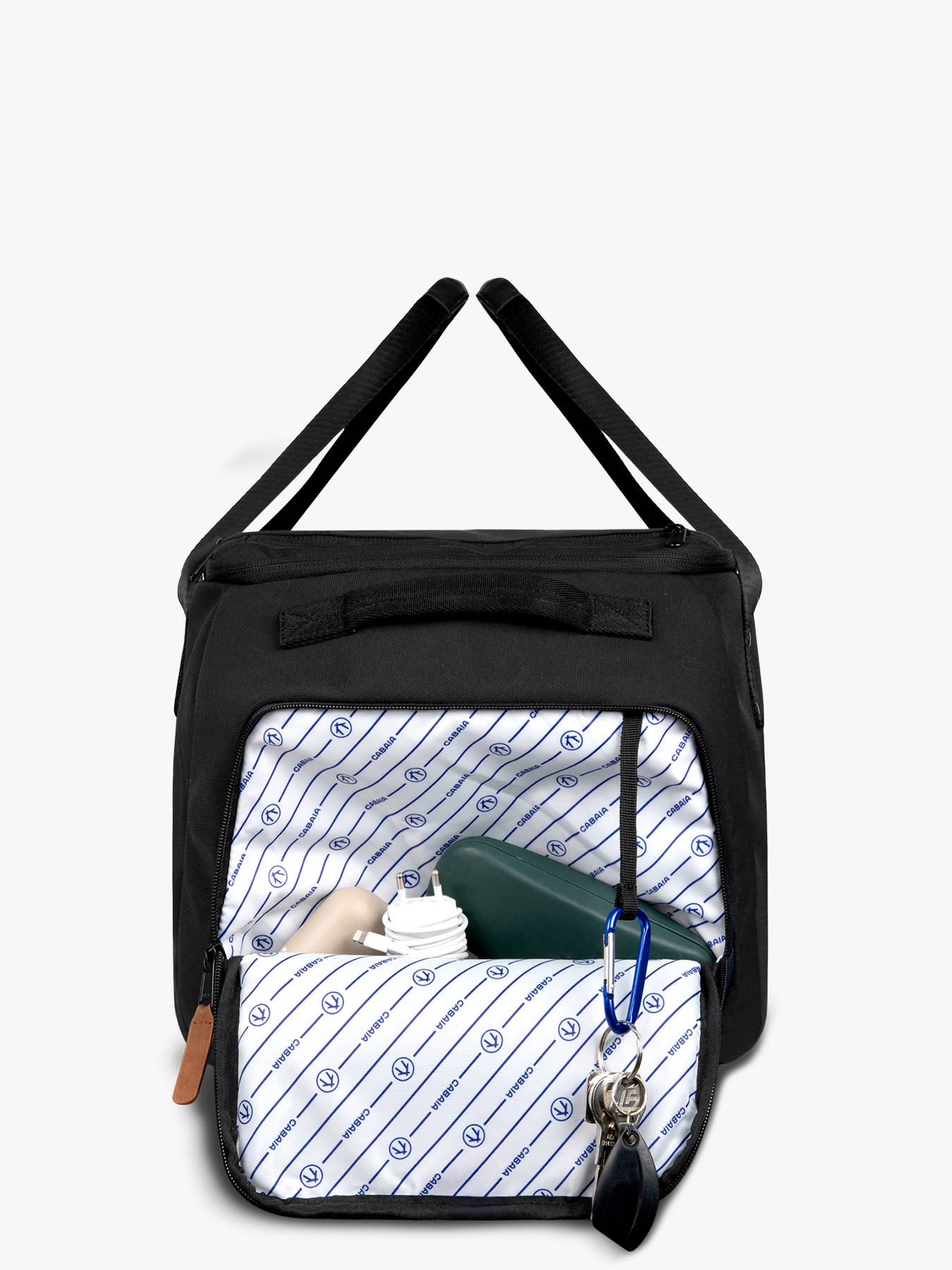 Travel smarter with the Cabaia Cabin Travel Bag. Lightweight (1.43 kg) yet spacious (48 L), it meets cabin luggage dimensions (28 x 58 x 30 cm), making it ideal for 3 to 5-day trips. Crafted from recycled water-repellent polyester with a 100% polyester lining, this bag is vegan, durable, and comes with a lifetime guarantee. Designed for maximum versatility, it features magnetic and side handles for easy carrying, as well as integrated straps to wear it comfortably as a backpack. A dedicated padded compartment keeps your 15-inch laptop secure, while a separate shoe compartment ensures clean and organized packing. The 45° angled bottle pocket and interchangeable reflective front pocket with MOLLE system add extra convenience and style. Functional, stylish, and eco-friendly, the Cabaia cabin bag is the perfect companion for city breaks, business trips, or weekend getaways.