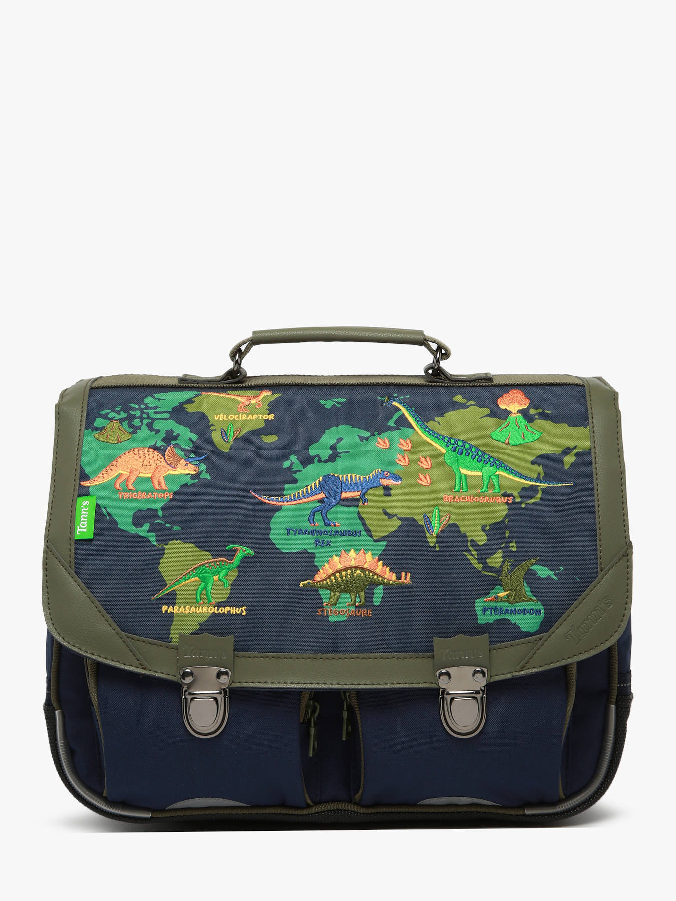 35 cm - 12 litres - 0.65 kg ~ Ce cartable TANN'S en polyester recyclé est conçu pour les garçons de 3 à 6 ans. Léger et pratique, il dispose d’un compartiment principal pouvant accueillir un dossier A4, un cahier jusqu’au format 24x32 cm et un classeur 17x22 cm. À l’intérieur, une poche zippée permet de ranger les petits objets en toute sécurité. L’extérieur comprend deux poches avant idéales pour les accessoires. Sa fermeture à rabat avec fermoir métallique garantit une utilisation simple et sécurisée. Les bretelles réglables assurent un bon maintien sur le dos, et la poignée permet un porté main confortable. Un cartable durable, ergonomique et adapté aux jeunes enfants.
