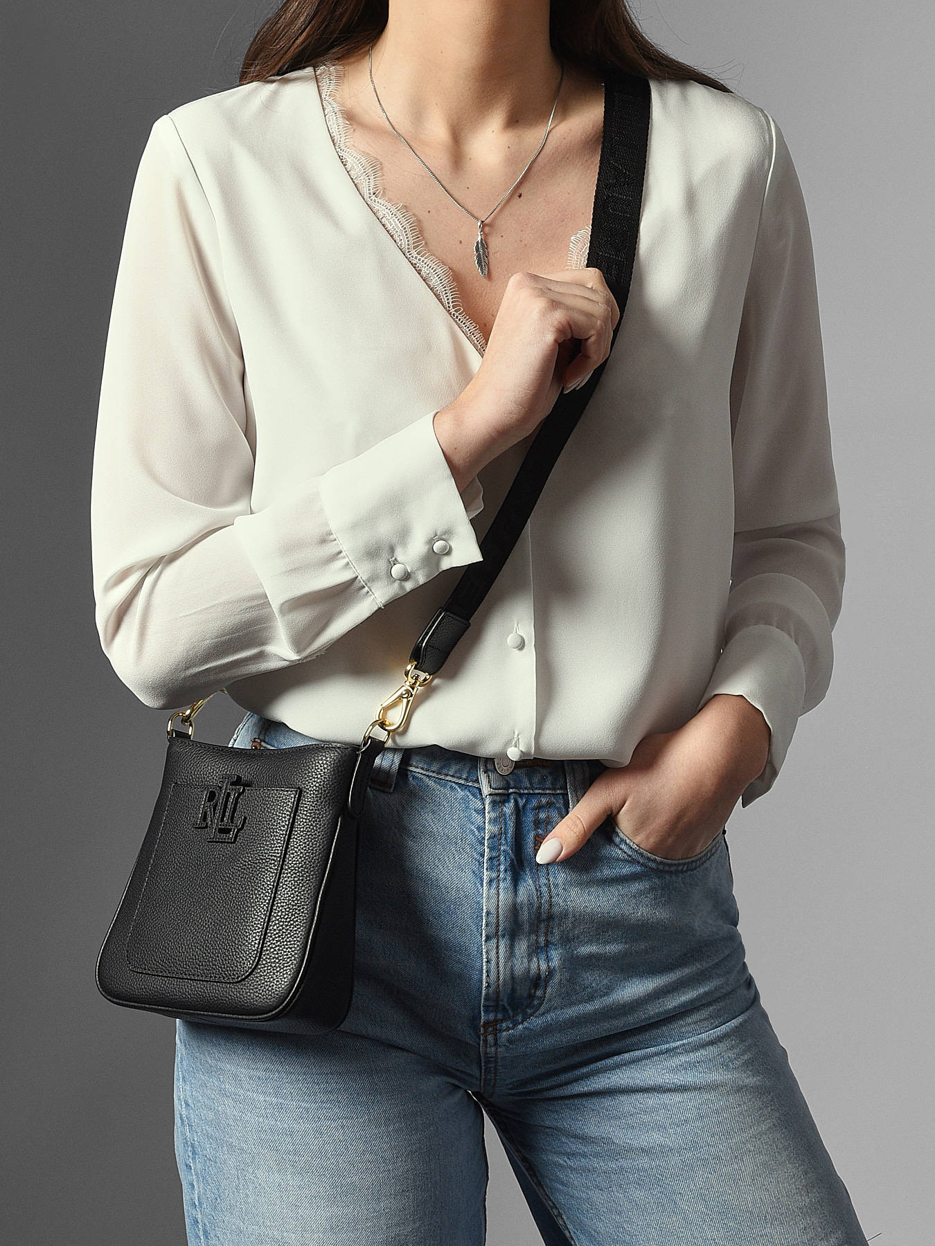 The CAMERYN LAUREN RALPH LAUREN crossbody bag, crafted from high-quality cowhide leather, combines elegance and everyday practicality. Its sleek design is enhanced by a discreet front pocket and a magnetic closure that makes opening easy while securing your belongings. The adjustable and removable strap offers great versatility, allowing for comfortable crossbody wear tailored to your preference. Inside, a single compartment provides ample space for your essentials, complemented by a zip pocket to keep small items organized and secure. Lightweight and durable, this CAMERYN bag is perfect for complementing your urban looks with a touch of sophistication characteristic of Ralph Lauren. A must-have accessory for those who value style and functionality.