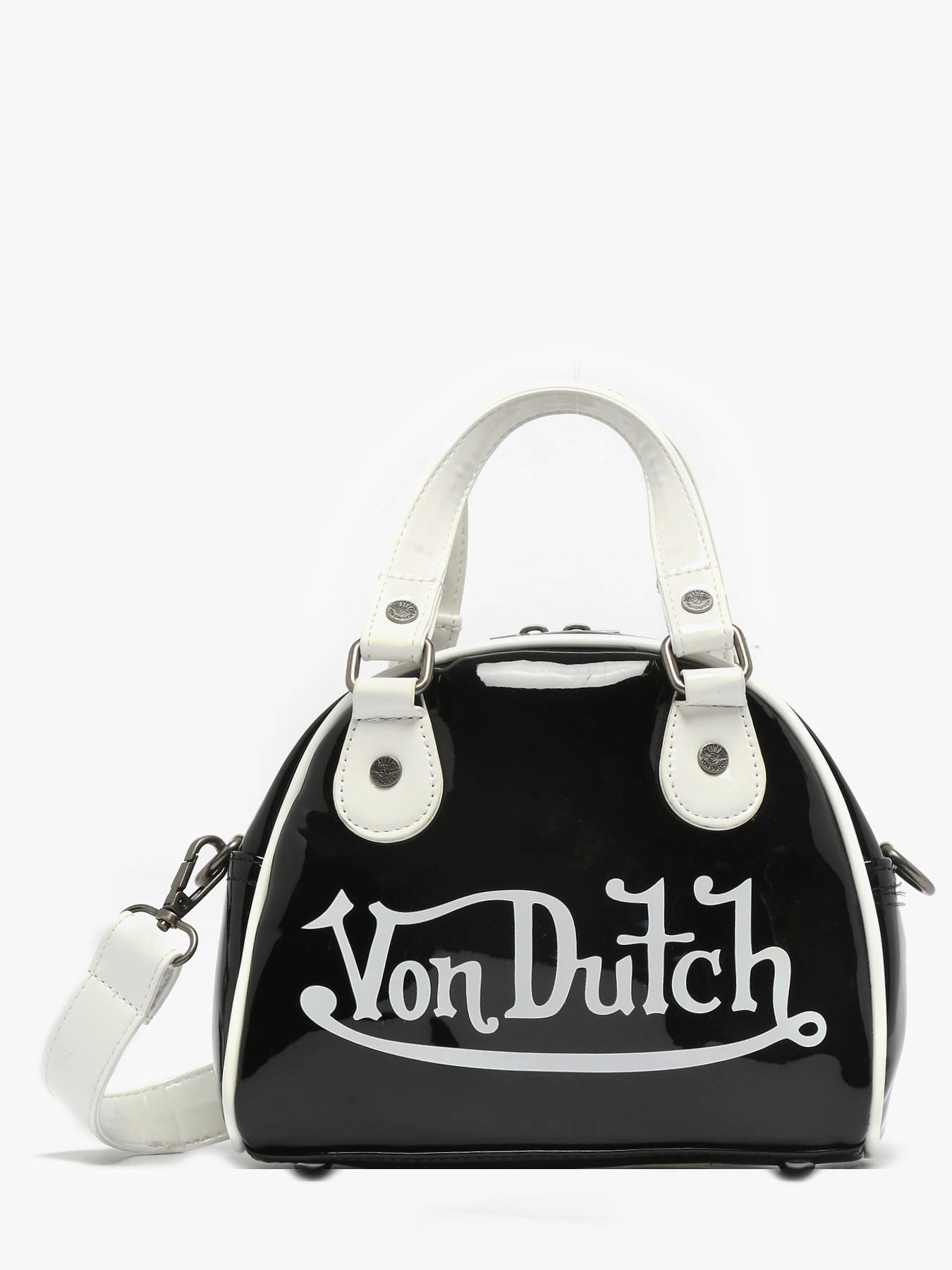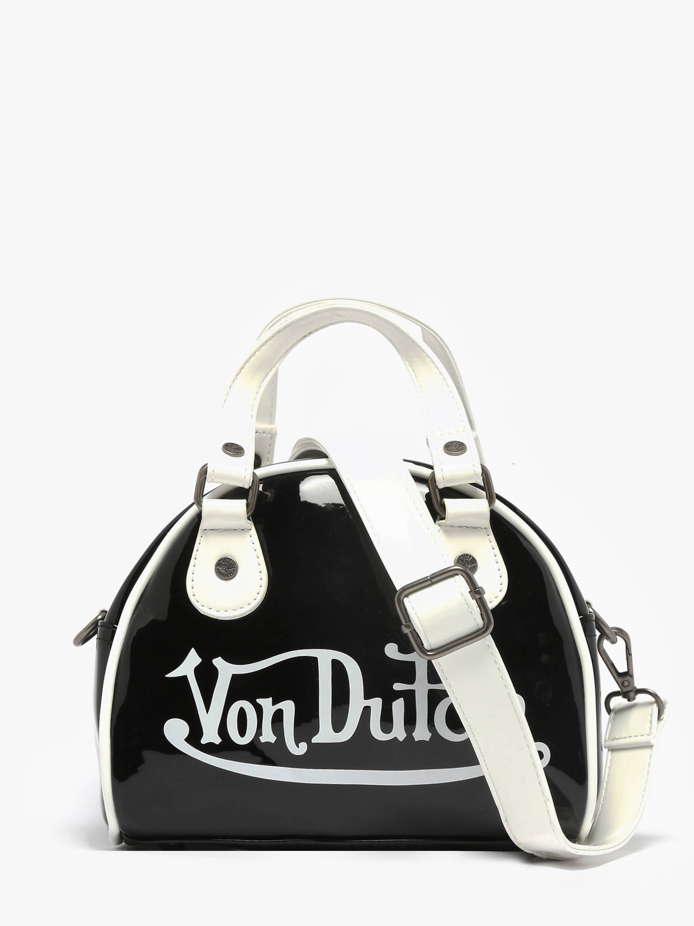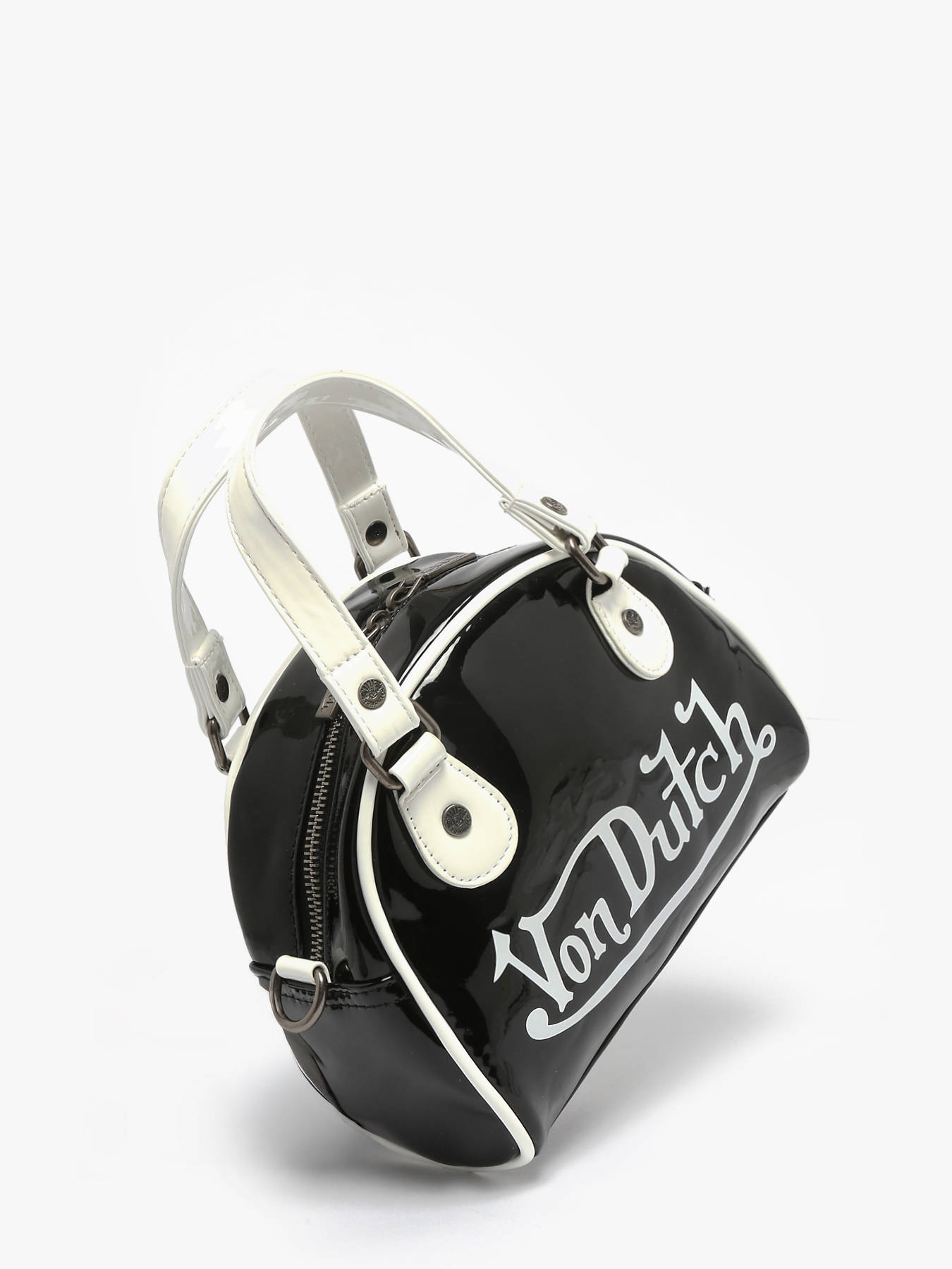 The Naly mini handbag by VON DUTCH combines elegance and modernity with its shiny patent finish that catches the eye. Compact yet functional, it is perfect for carrying essentials in style, whether for city outings or evenings. Its zip closure ensures your belongings are secure while providing quick, convenient access. Inside, a main compartment is complemented by a simple pocket and a zip pocket, allowing organization of cards, keys, and small items. The adjustable and removable strap allows it to be worn crossbody for a casual look or by hand for a more sophisticated style. With a 9 cm handle height, the Naly stands out for its elegant design and versatility. This mini handbag is the ideal accessory for those seeking style, practicality, and refinement in a compact format.