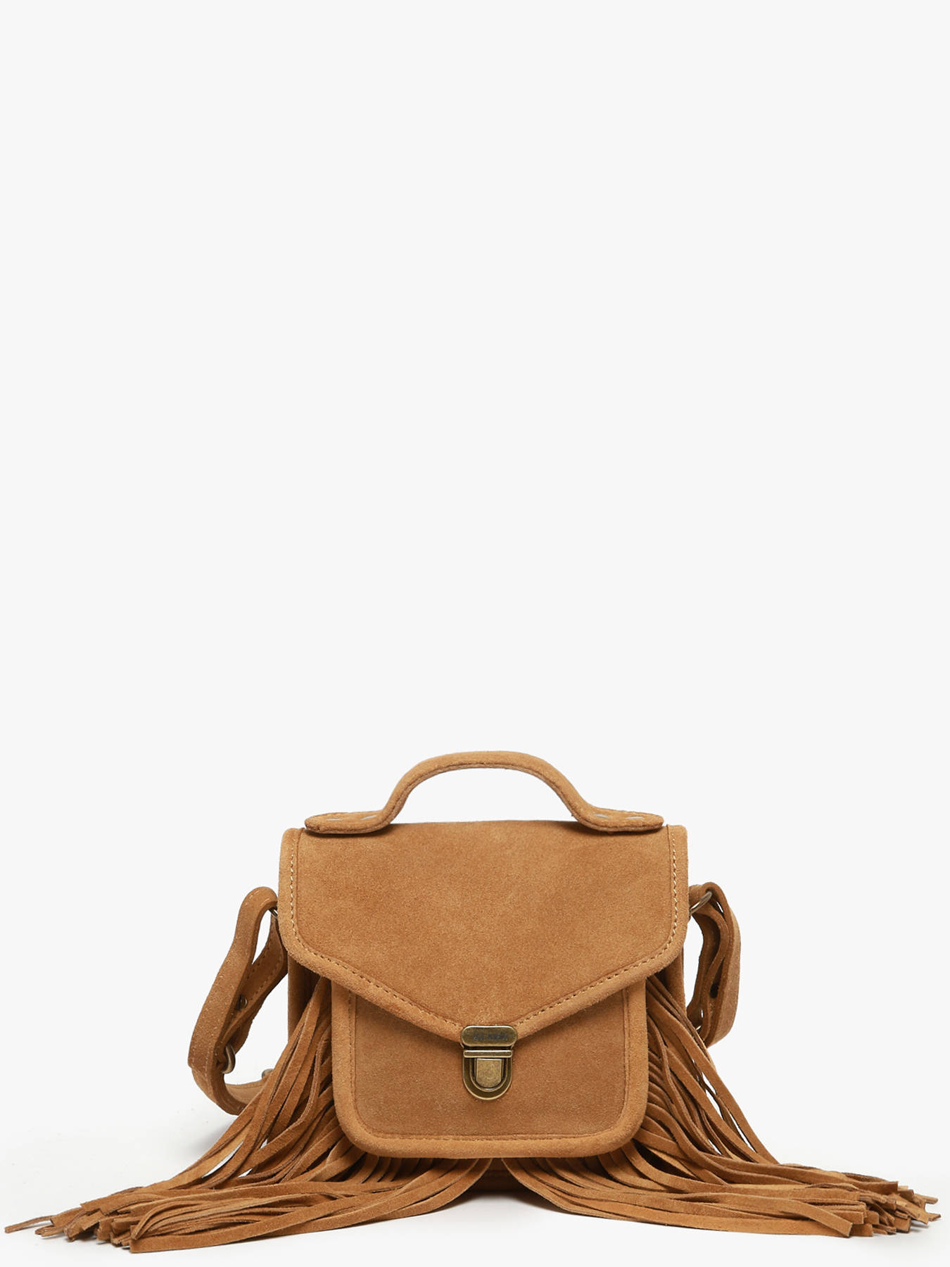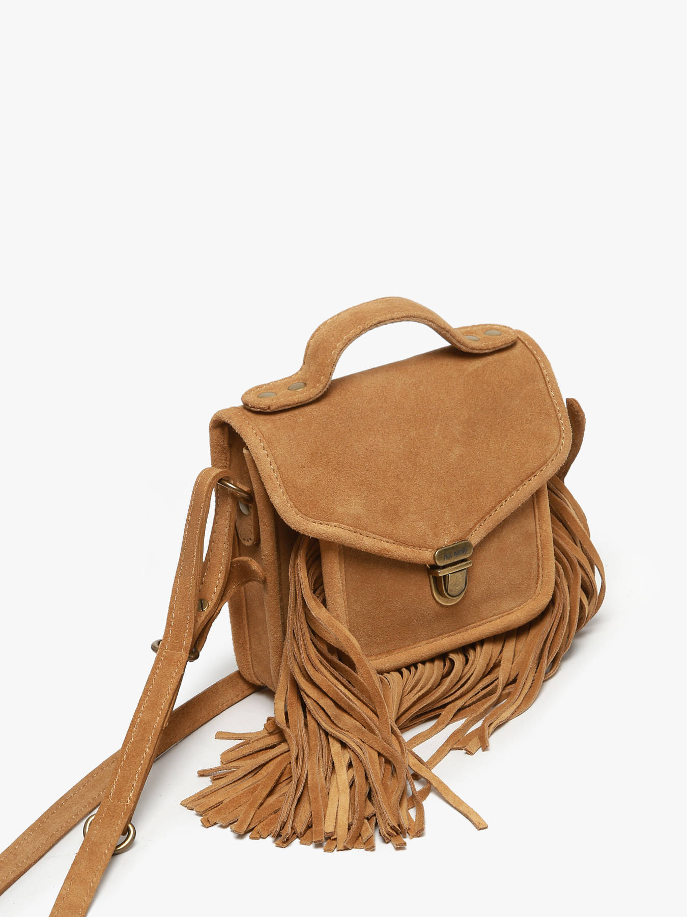 Sac bandoulière PAUL MARIUS Mademoiselle George XS – Édition limitée Folk, coloris Havane. En cuir de vachette suédé, ce modèle mêle esprit bohème et savoir-faire artisanal. Porté à la main ou en bandoulière grâce à sa bandoulière réglable et amovible. Fermeture à rabat avec fermoir, une poche avant. Intérieur : un compartiment, une poche simple et une poche zippée.