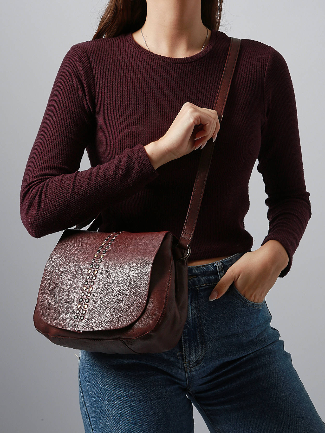 Le rabat n est pas fini il n y a aucun bord, c est du cuir coupé brut, les clous sont lourds et peu brillant. De plus le cuir plisse facilement et cela se voit beaucoup. Pour le prix c est décevant, seule la couleur est conforme à mes attentes.
