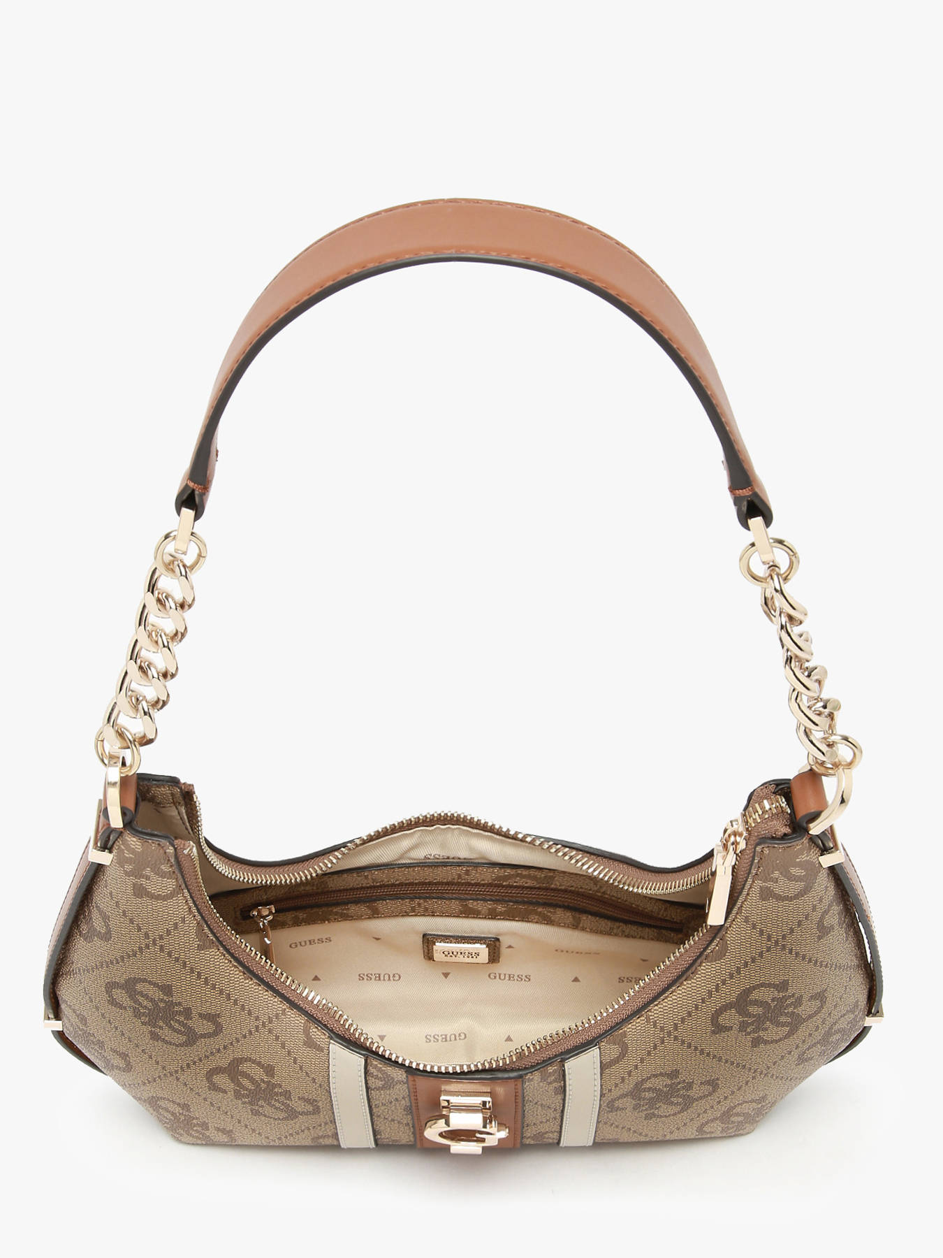 The ERENIA shoulder bag by Guess, crafted from durable coated canvas, perfectly combines modern style with everyday functionality. Its zip closure keeps belongings secure while adding a sleek, elegant touch to the design. With a 29 cm handle, it can be comfortably worn over the shoulder, offering a polished and feminine silhouette. Inside, a spacious main compartment is complemented by three slip pockets and one zip pocket, ideal for organizing essentials like phone, wallet, or small accessories. Lightweight and functional, the ERENIA stands out with its contemporary look and sophisticated simplicity, perfect for both casual city outfits and relaxed occasions. Its practical design and clean lines make it a versatile bag for daily life, combining convenience and elegance. Stylish and modern, it embodies Guess’s dynamic and trendy spirit.