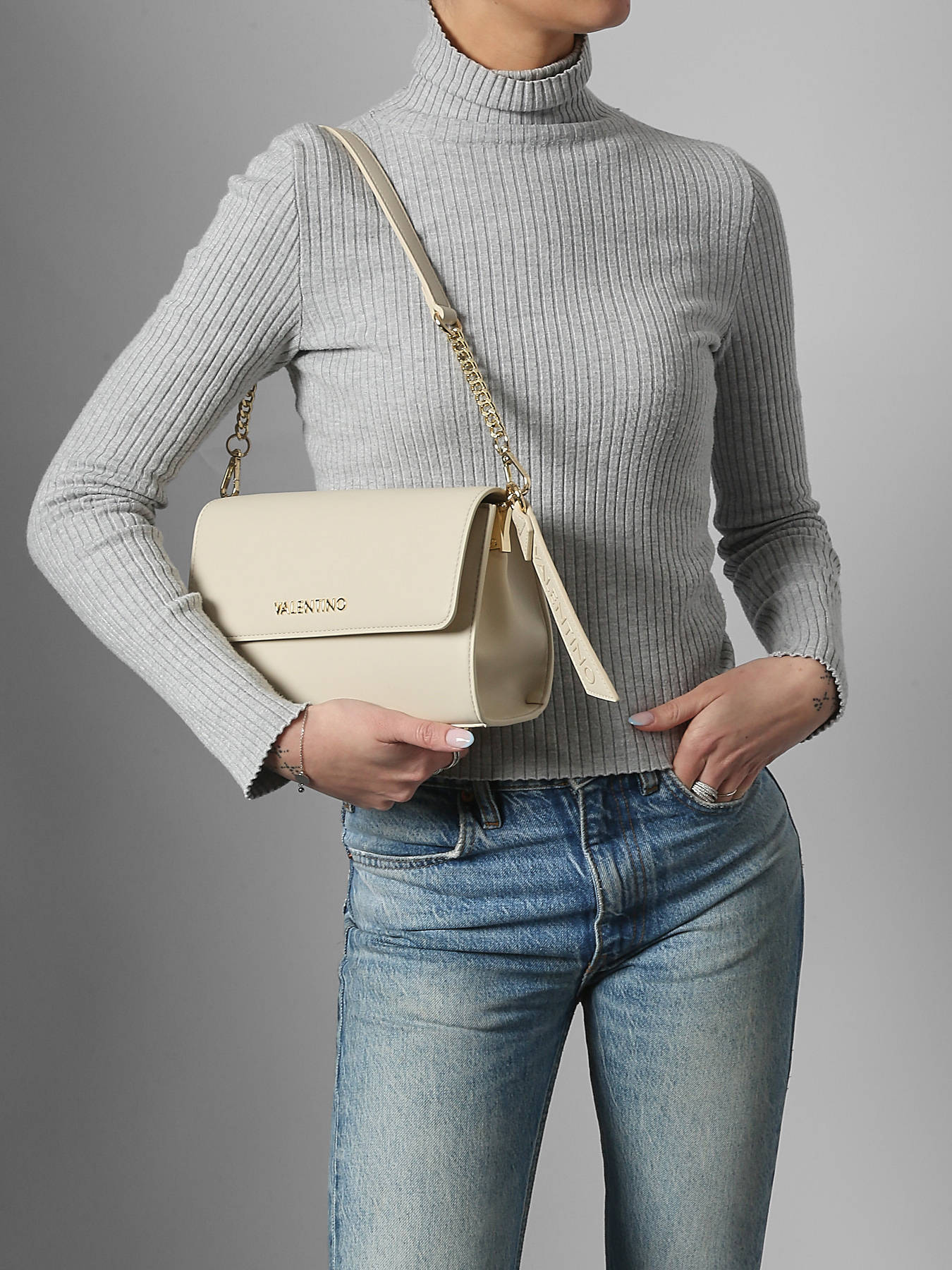 The Valentino Hira shoulder bag stands out with its elegant design and versatile functionality, perfect for stylish everyday use. Crafted from coated canvas, it combines durability and lightness while maintaining a structured, modern silhouette. Its flap closure with a magnetic button ensures security and practicality, providing easy access to essentials. The 27 cm handle allows comfortable shoulder wear, while the adjustable and removable shoulder strap offers full versatility: shoulder, crossbody, or hand carry. The interior features two main compartments, complemented by one slip pocket and two zip pockets for optimal organization. Sophisticated and functional, this model perfectly reflects Valentino’s aesthetic, blending contemporary style, comfort, and practicality.