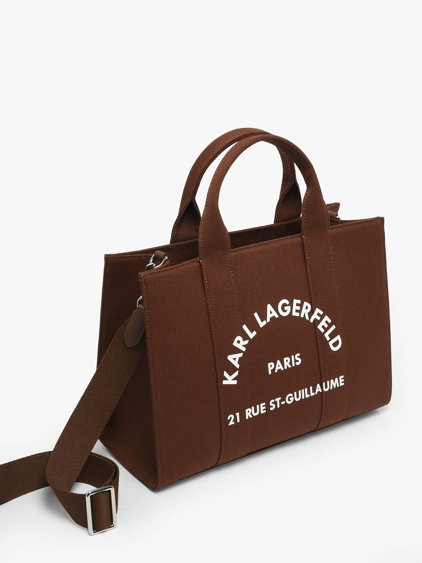 The KARL LAGERFELD cotton handbag is an elegant and versatile model. It features a modern design with a zip closure for added security. Its adjustable and removable strap allows for both handheld and crossbody wear, adapting to your needs and style. Inside, it has two simple pockets and one spacious main compartment to organize your essentials. This bag is the perfect accessory for daily use, combining practicality and sophistication while showcasing the distinct style of the KARL LAGERFELD brand.