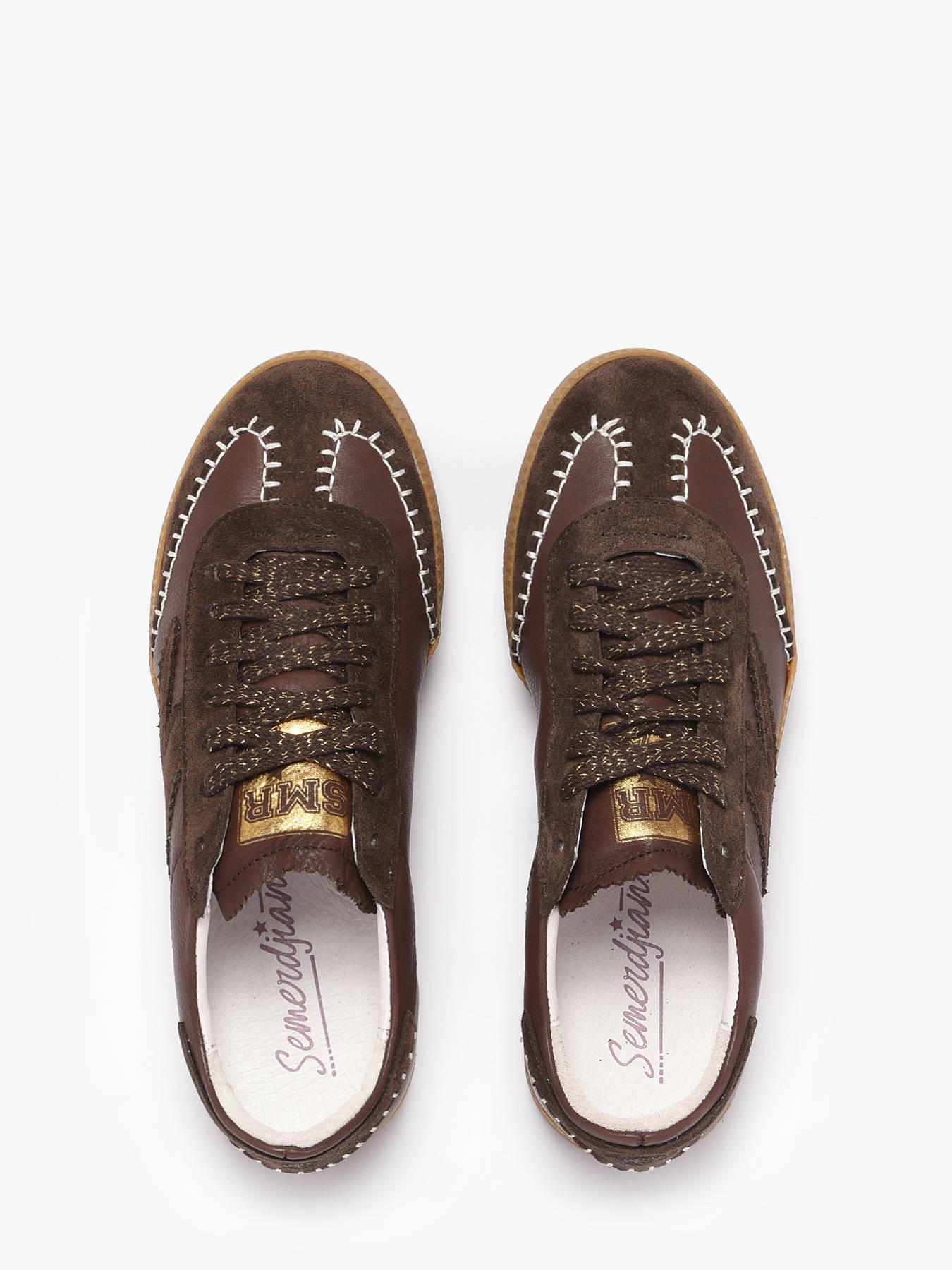 Add a trendy and elegant touch to your outfits with ZADIK sneakers from SEMERDJIAN. Their smooth leather and suede upper combines style and quality, while the visible white stitching subtly decorates the shoe, creating a unique and modern look. The side logo highlights the brand’s identity, and the laces accented with golden threads add a sophisticated and original detail. The synthetic and leather lining ensures comfort and breathability, and the removable leather insole allows for a personalized fit for all-day comfort. The lace-up closure provides precise and secure support. Versatile and stylish, these SEMERDJIAN sneakers pair effortlessly with jeans, trousers, or casual outfits, quickly becoming a wardrobe essential.