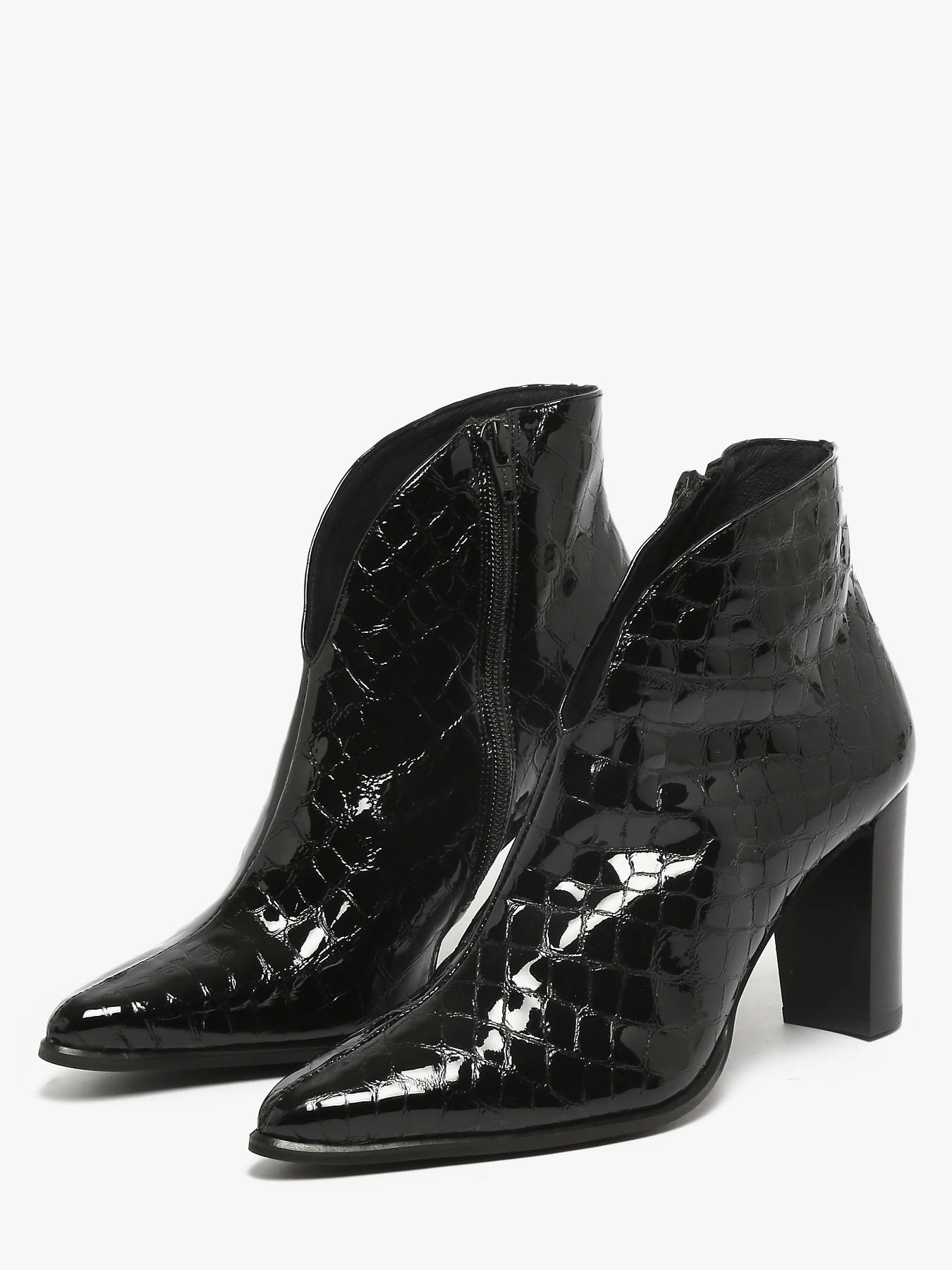 Les bottines à talon MYMA incarnent l’élégance et la féminité avec un design raffiné et moderne. Disponibles en cuir lisse noir ou vernis croco, elles présentent une silhouette affinée et une tige légèrement montante qui enveloppe la cheville pour un maintien élégant. Le bout pointu accentue la finesse et le style sophistiqué de la chaussure, tandis que le talon carré de 8,5 cm offre une allure chic tout en assurant confort et stabilité. La doublure et la semelle intérieure en cuir garantissent un confort durable et une sensation de luxe à chaque pas. Ces bottines MYMA sont parfaites pour sublimer toutes vos tenues, du bureau aux sorties en soirée, en apportant une touche de modernité et de raffinement.