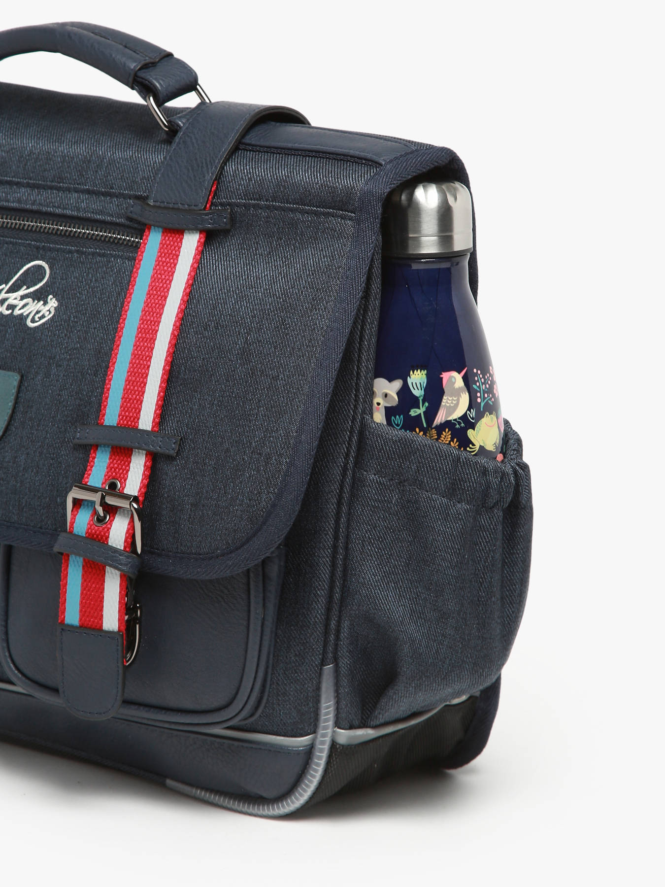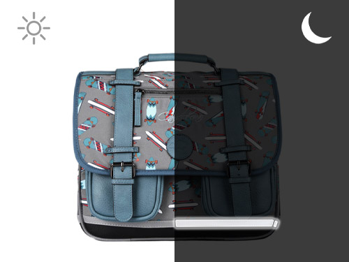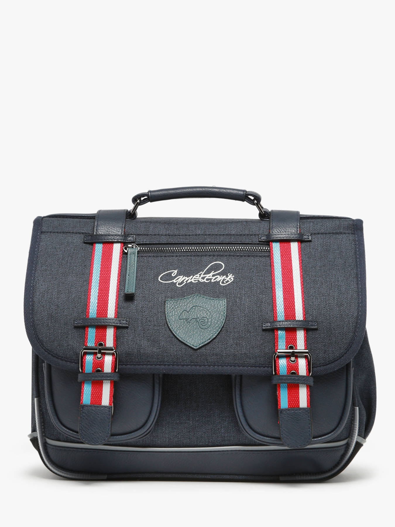 35 cm - 12 litres - 1 kg ~ Cartable enfant cp 35cm de la ligne Vintage Urban signé Caméléon, parfait pour le CP et la maternelle ! Il dispose de deux compartiments séparés par une poche centrale zippée. Vous pourrez y ranger les cahiers formats 21x29,7 et 24x32cm. Ce cartable 35 cm est doté d'un emplacement spécial règle et d'un emplacement pour la gourde. Il se ferme à l'aide d'un rabat et de deux fermoirs, et possède deux petites poches à fermeture éclair sur le devant, pratique pour le goûter. Petit plus, le cartable dispose d'une étiquette nom. Très confortable, le dos et les bretelles sont rembourrés. Pour ne pas abîmer les affaires d'école, le fond du cartable est renforcé. Côté sécurité, des bandes réfléchissantes sont disposées autour du sac. Petit plus, la règle Caméléon est offerte ! Fabriqué en polyester recyclé imperméable.