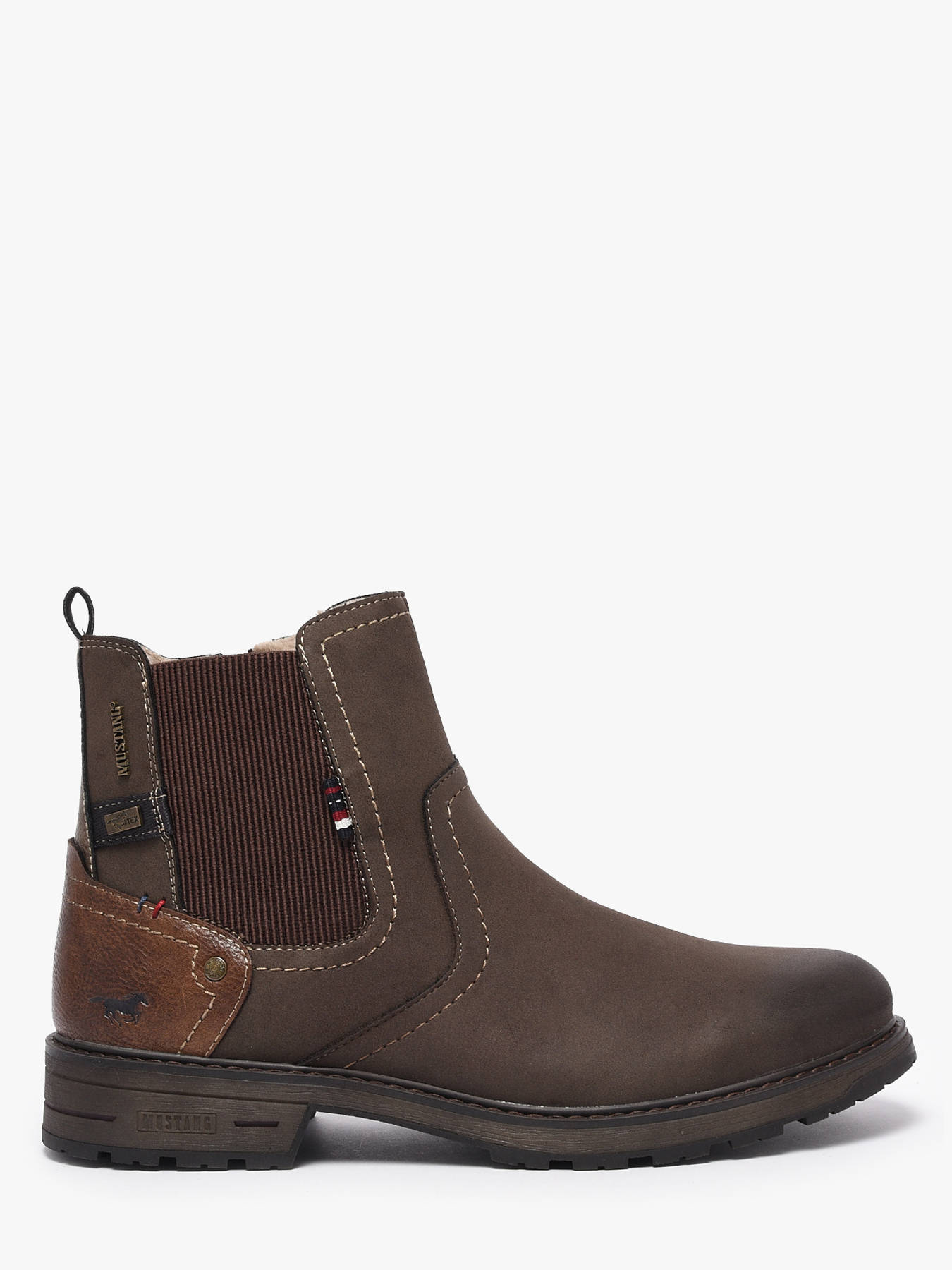 Alliez confort, chaleur et style avec les Chelsea boots homme MUSTANG, parfaites pour affronter l’automne et l’hiver avec élégance. Leur dessus en synthétique à finition nubuck apporte une allure moderne et soignée, tandis que le logo sur la tige souligne le caractère distinctif de la marque. La doublure en fourrure synthétique garde vos pieds agréablement au chaud, et la semelle intérieure en textile assure confort et respirabilité pour un port agréable toute la journée. La fermeture combinant zip et élastiques facilite l’enfilage tout en garantissant un maintien optimal du pied, alliant praticité et style. Polyvalentes et tendance, ces Chelsea boots MUSTANG se marient facilement avec jeans, pantalons ou tenues casual chic, offrant un look contemporain et raffiné. Elles deviennent rapidement un incontournable de votre garde-robe masculine pour la saison froide.