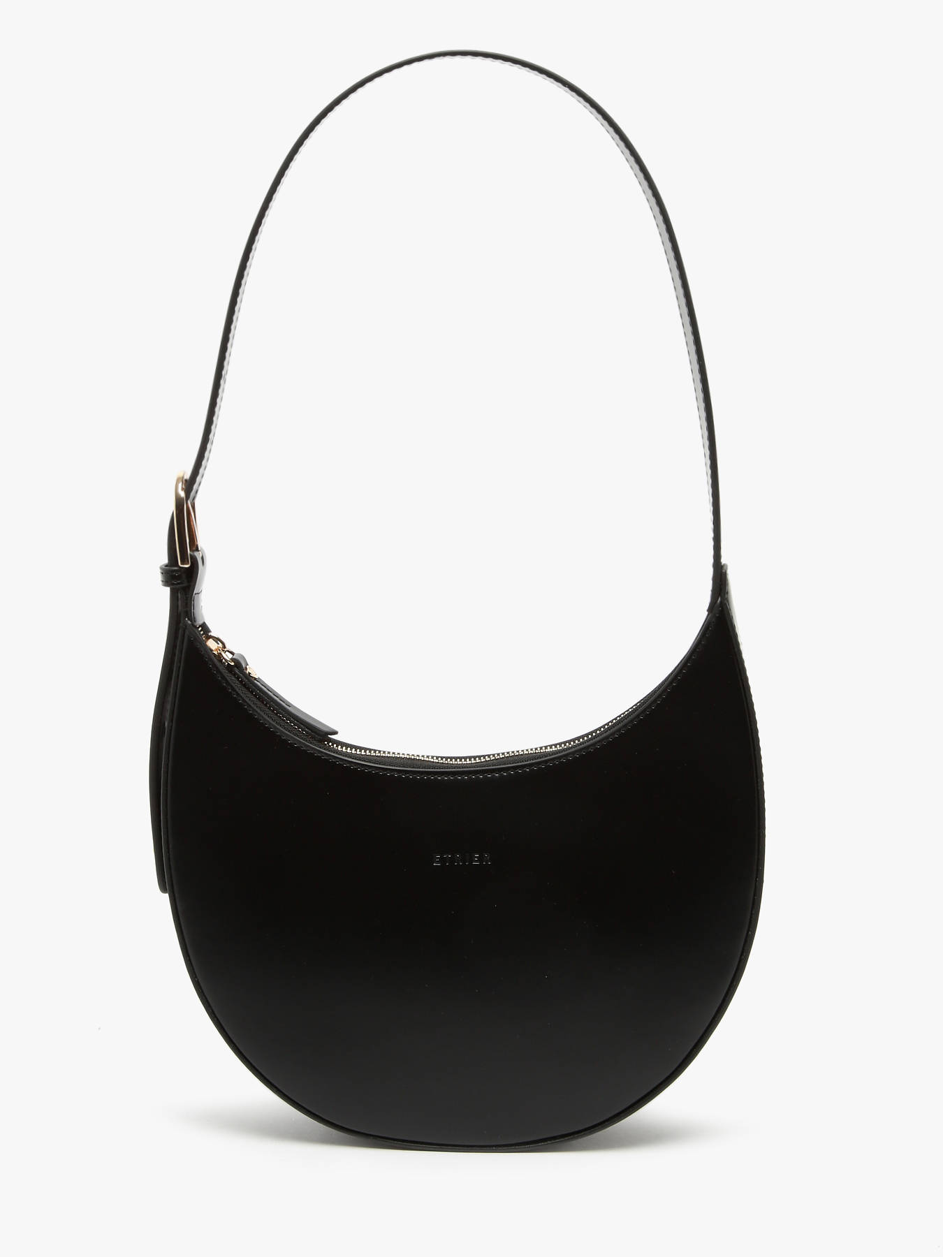 Ce sac demi-lune ETRIER de la ligne ALTAIR en cuir de vachette allie élégance et praticité. Son porté épaule est sublimé par une boucle raffinée et un petit clou signature en forme de goutte. Fonctionnel, il dispose d’un compartiment spacieux, d’une poche simple et d’une poche zippée. Fermeture zippée. Hauteur de anse : 26 cm.
