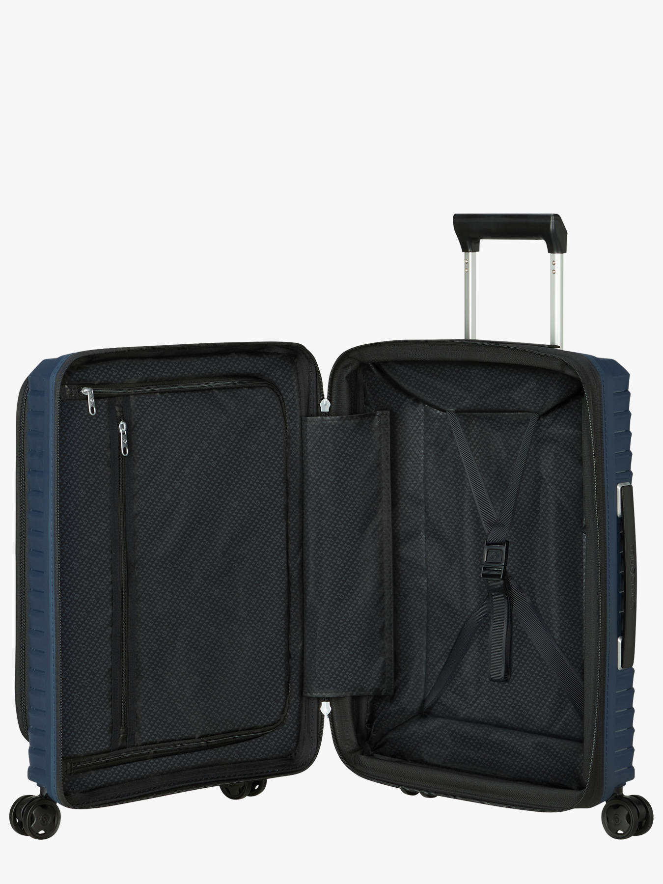 Voyagez en tout confort avec la valise cabine Samsonite Upscape à 4 roues, conçue pour simplifier vos déplacements grâce à une combinaison idéale de légèreté (2,6 kg) et de fonctionnalités. Rigide et extensible, elle offre un volume généreux de 42 à 48 L (55 x 40 x 23/26 cm), tout en restant compatible avec les formats cabine. Sa coque en Polypropylène intègre une innovation majeure : des roues à suspension qui absorbent les chocs et réduisent considérablement le bruit de roulement. La sécurité est renforcée par une serrure à code TSA à 3 chiffres qui permet de verrouiller chaque compartiment séparément. L'organisation est pensée pour la technologie grâce à une poche frontale souple facile d'accès incluant des compartiments dédiés et rembourrés pour un ordinateur portable 15.6"" et une tablette 10.5"", un étui pour téléphone et un emplacement pour Power Bank. Le confort d'hygiène est assuré par une doublure intérieure amovible et lavable à la main. Voyagez sereinement avec l'Upscape, garanti 5 ans.